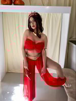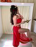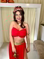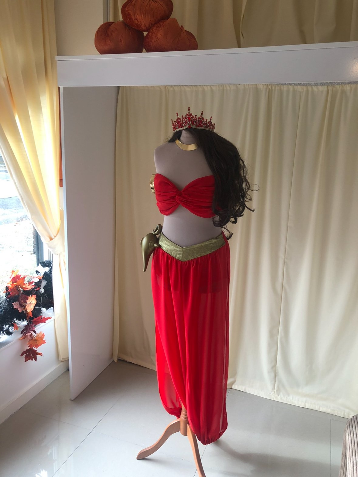 Bring a royal, exotic flair to your cosplay, festival, or costume event with this stunning red and gold Arabian princess-inspired outfit. Complete with accessories and dramatic details, this costume is made to make you feel regal and confident.