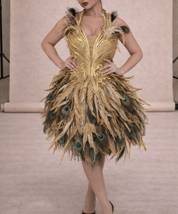 Gold Peacock Feather Dress – Handmade Luxury Adult Dress | The Life of O’Reilly