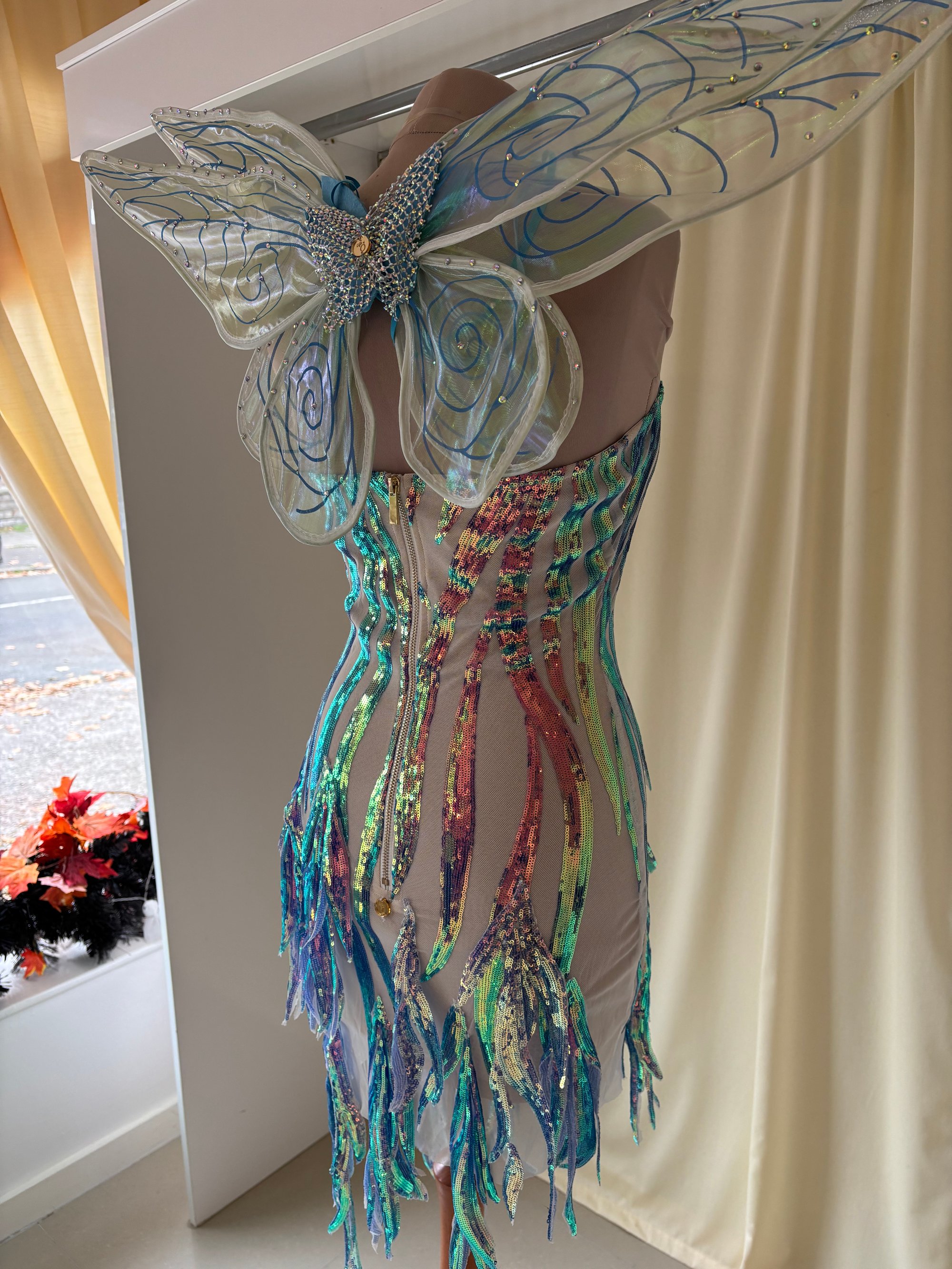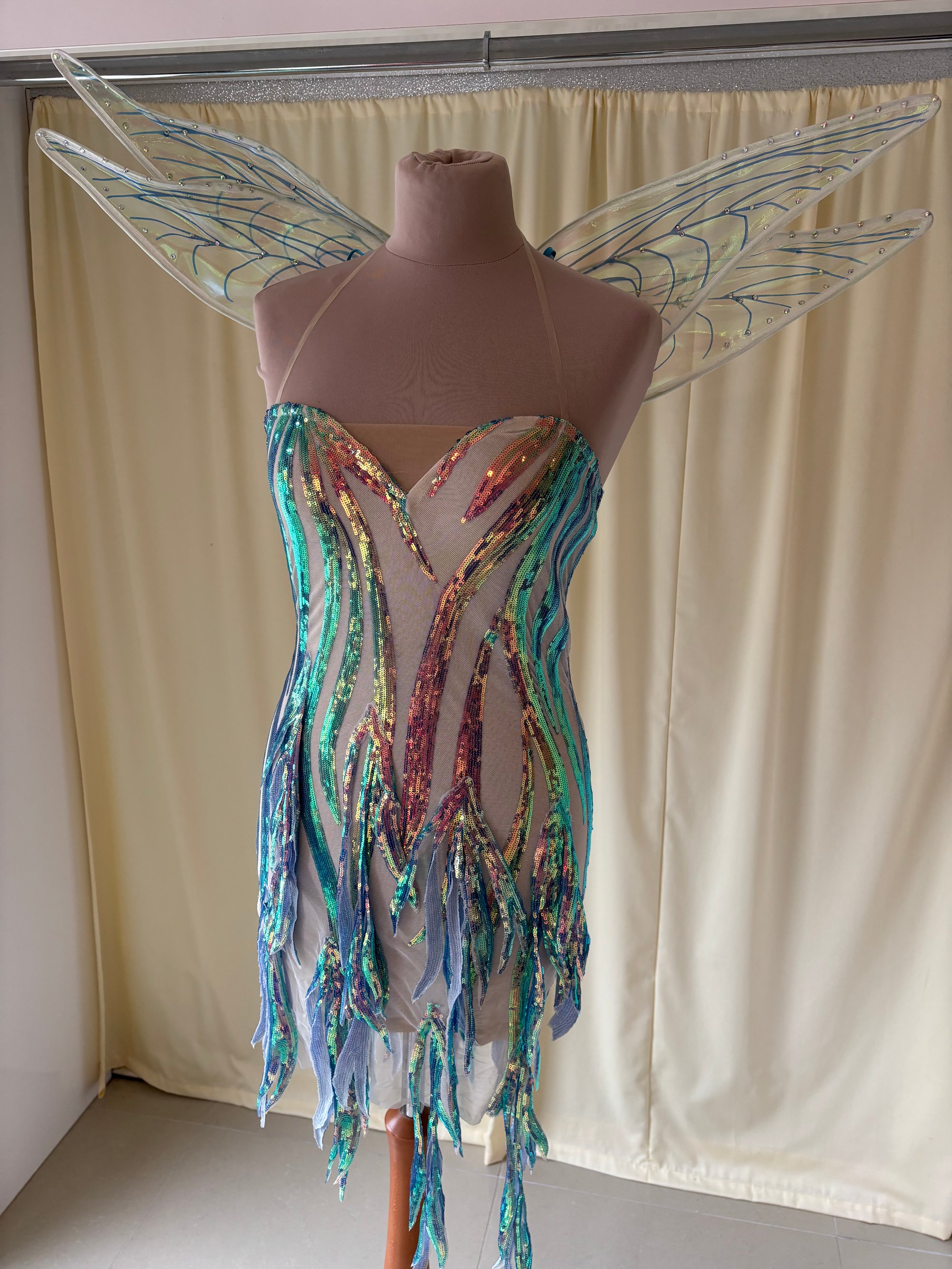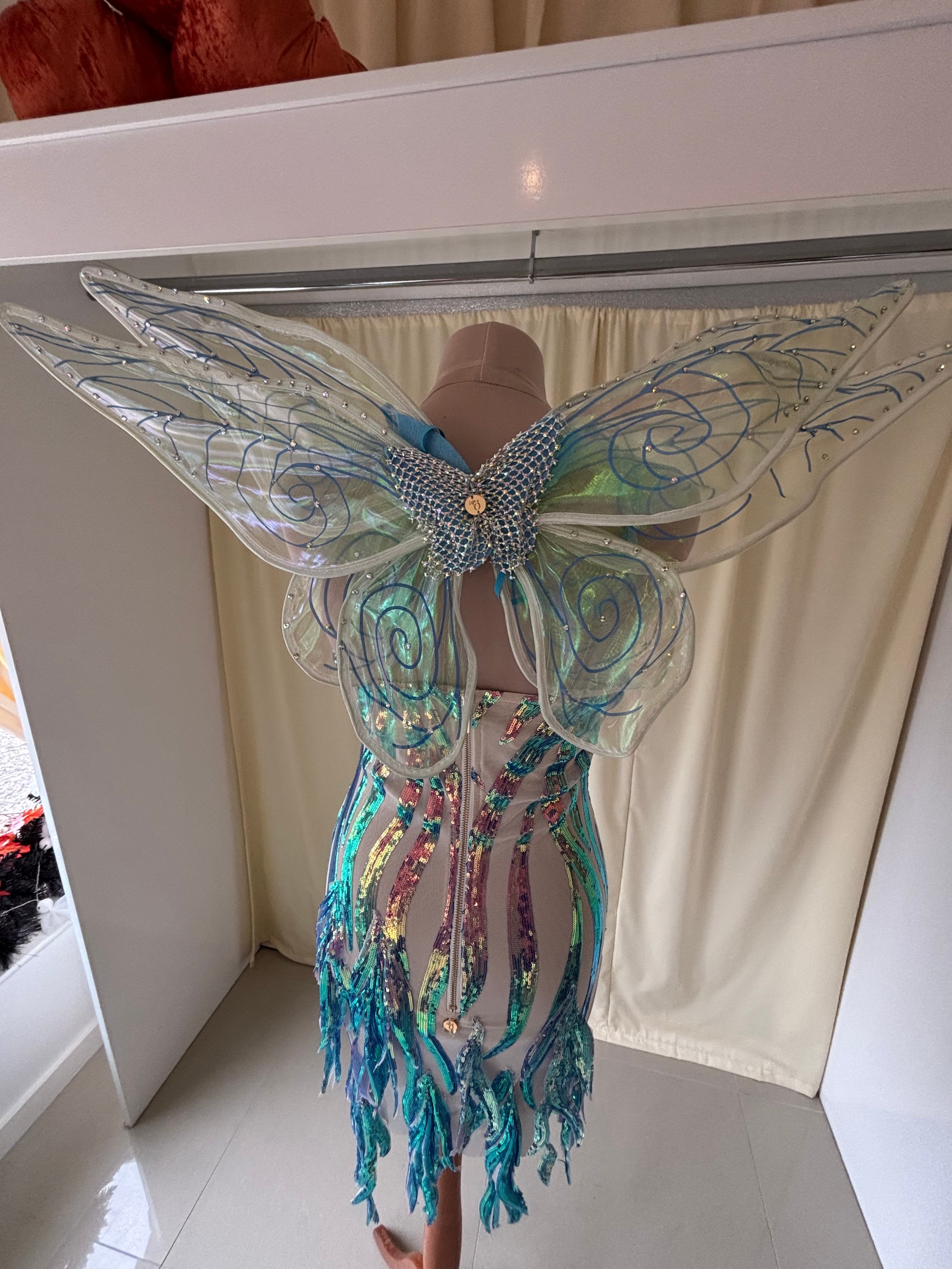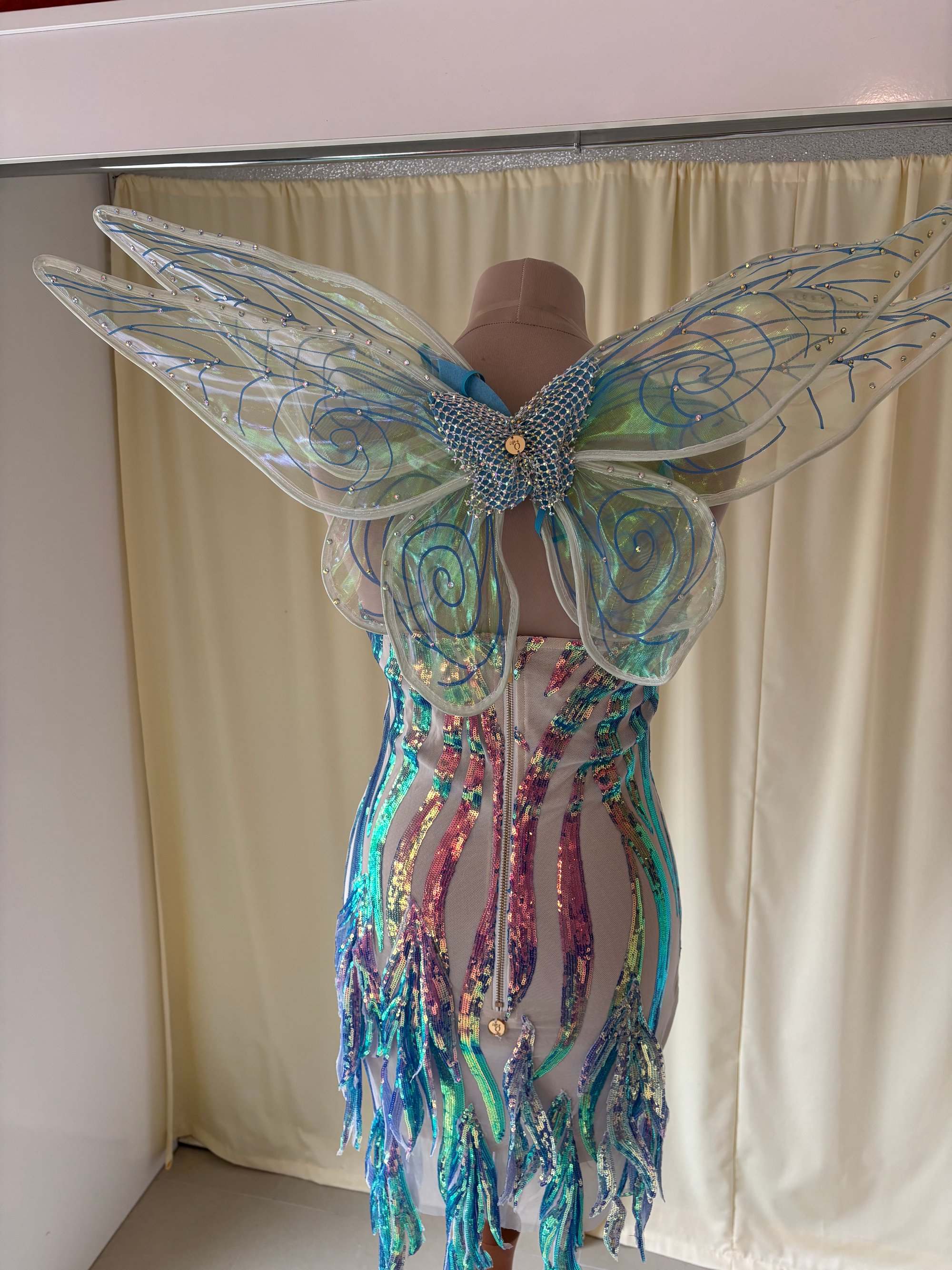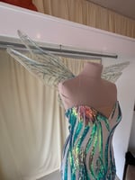 Adult sized wings with structured wire, organza fabric and full elasticated straps encrusted in rhinestones.