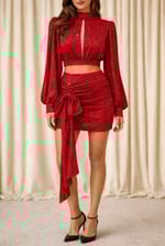 Red Glitter Two pIece skirt and top.