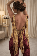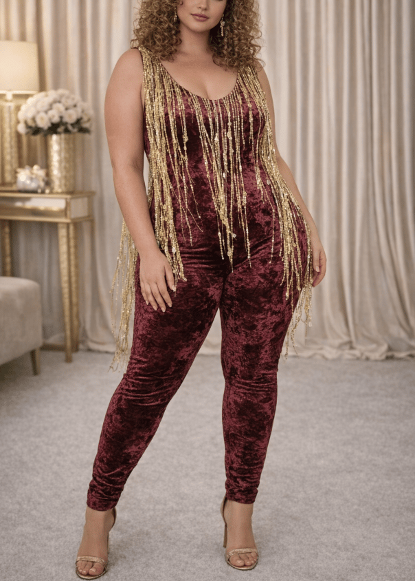 Sequin Tassel Velvet Catsuit: Wine 50% OFF LAST IN STOCK