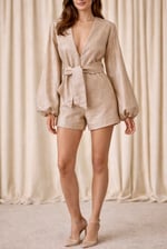 Introducing the show-stopping playsuit your wardrobe didn’t know it needed - a soft champagne dream designed for the girl who adores effortless glamour with a tailored edge.
