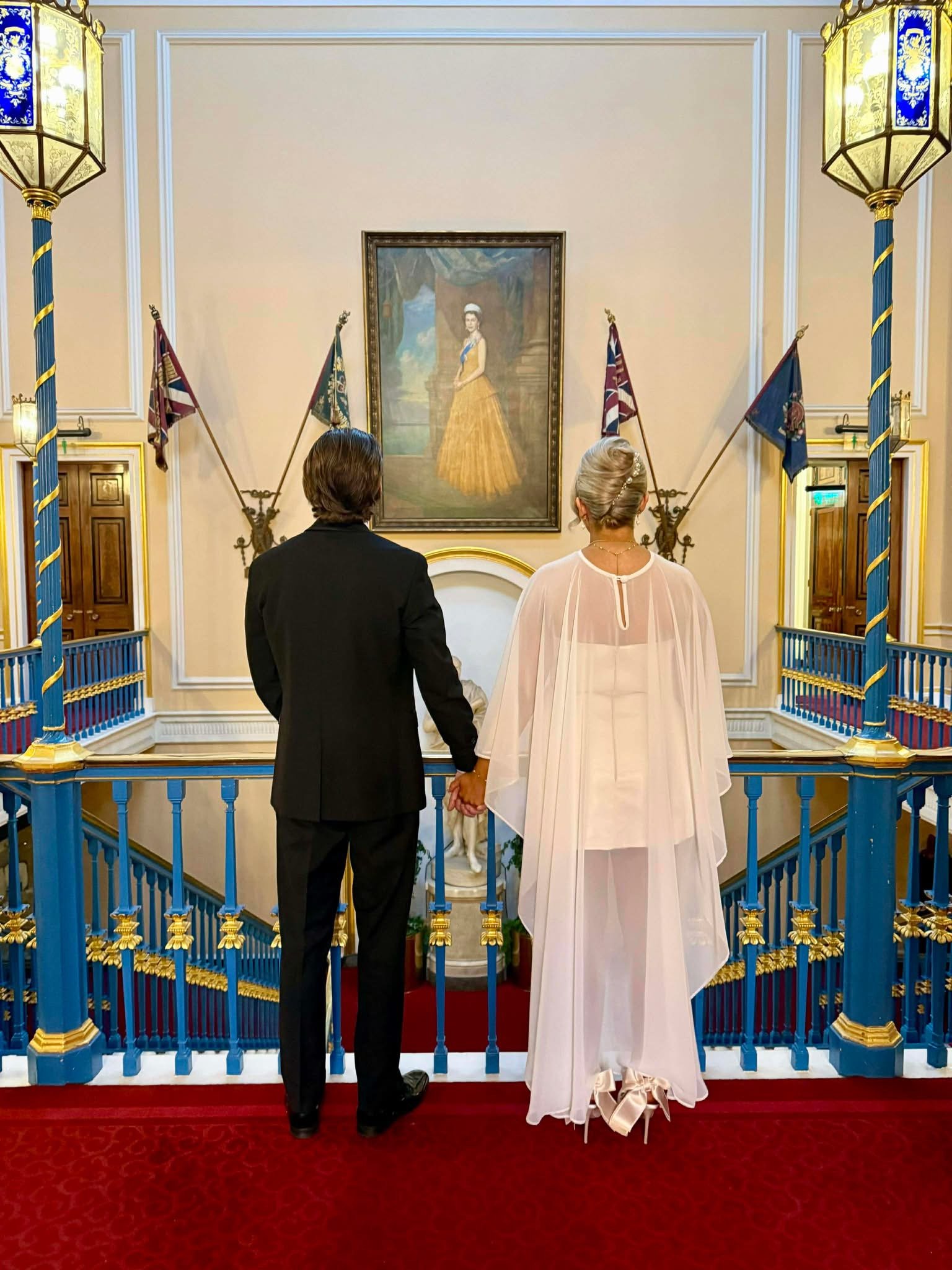 Ideal for civil ceremonies, church weddings, or a second bridal look, this cape brings quiet drama and timeless elegance to contemporary bridal styling.